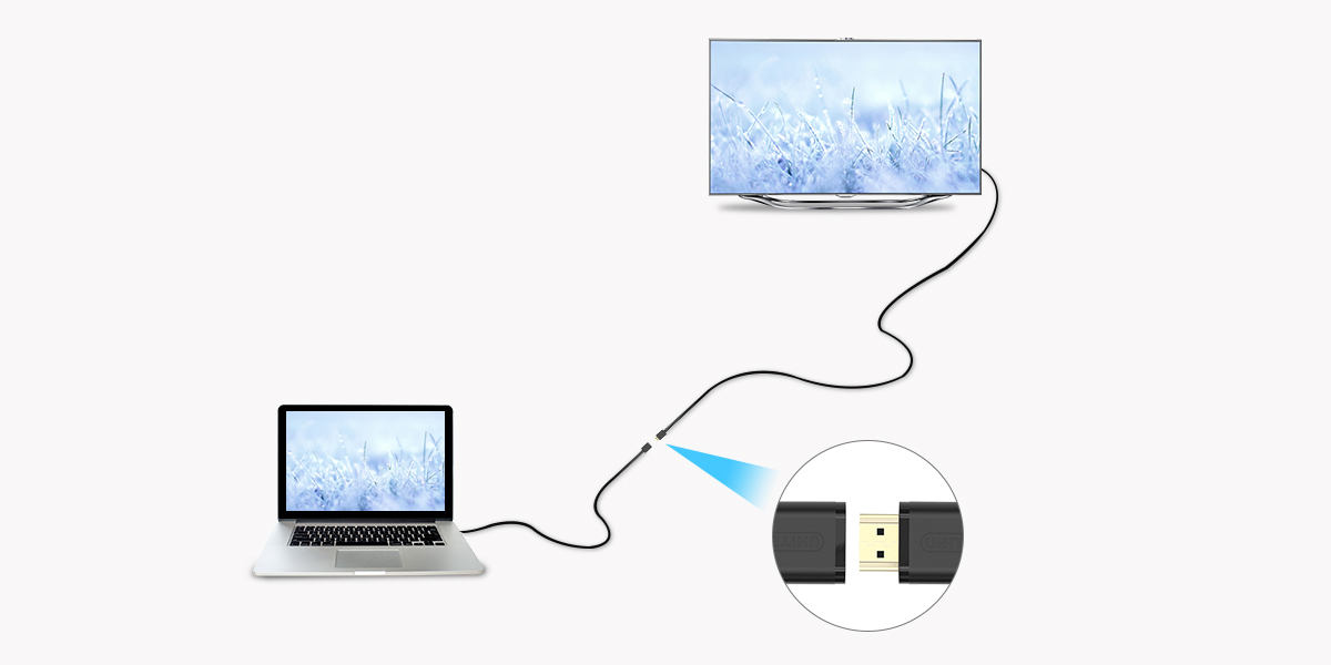 根据用户自己的使用环境,可将电脑/播放器(信号输出)端HDMI接口延长;或将电视/显示器(信号输入)端接口延长,
