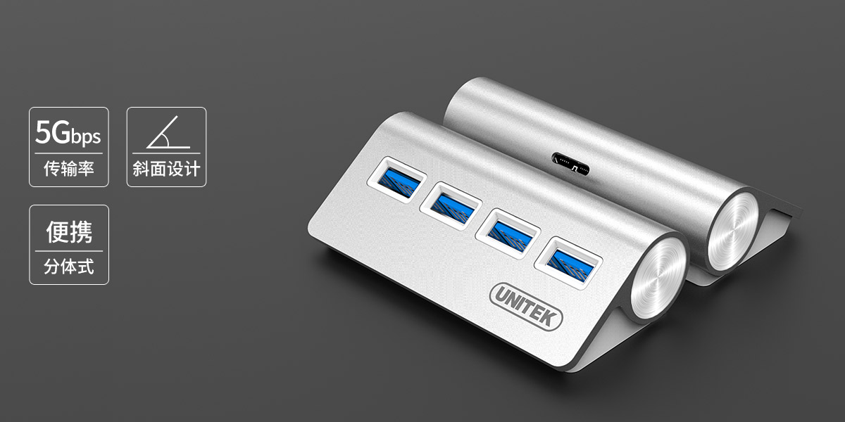 HUB45度角斜面设计应用,采用人体坐姿与视觉角度,使设备插拔动作便捷灵活,四口一字