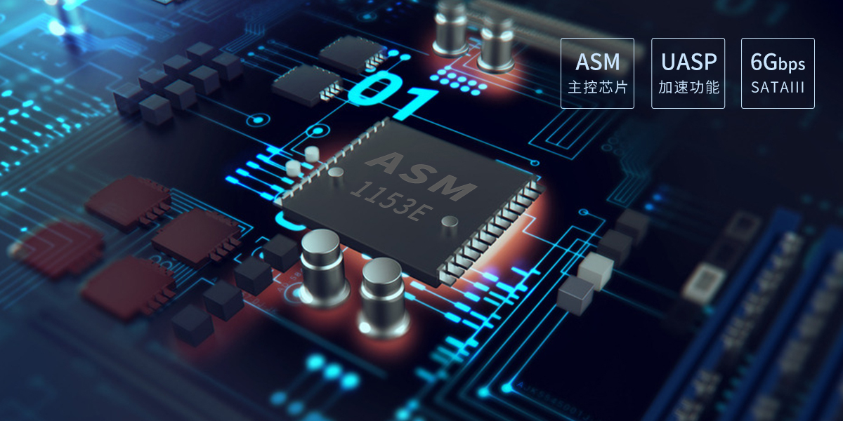 采用USB3.0接口传输技术,结合强劲的ASM1153芯片与SATA III技术,并支持UASP加速协议,