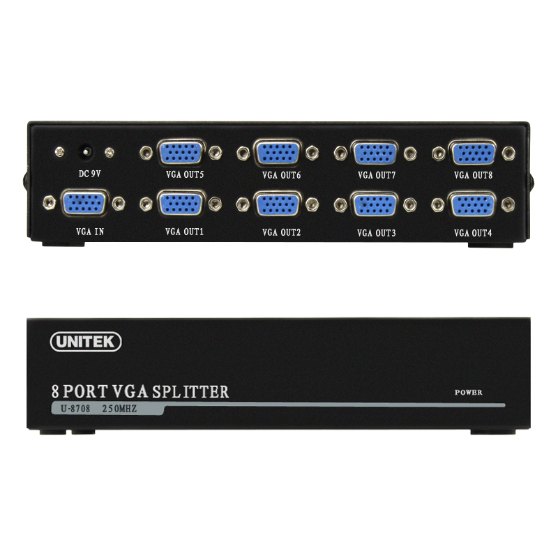 一台主机设备连接切换器,将一组输入信号,同步输出到八台显示器显示或电视、投影仪上,图像