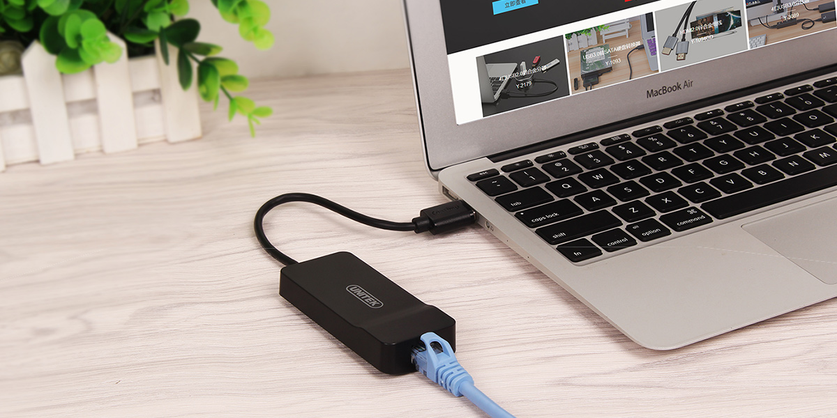 通过USB接口转换,为电脑设备扩展百兆网卡与HUB应用;如:苹果MacBook/微软Surface/